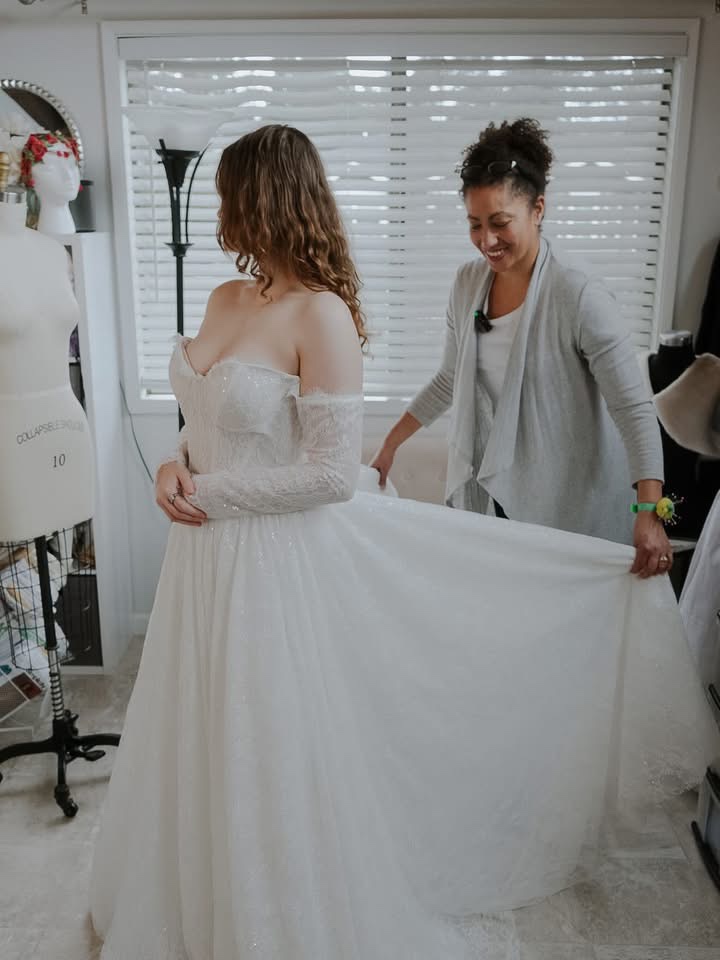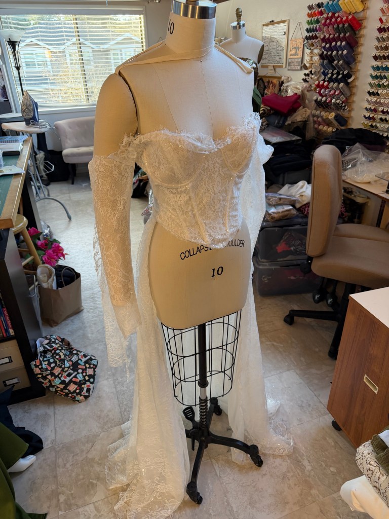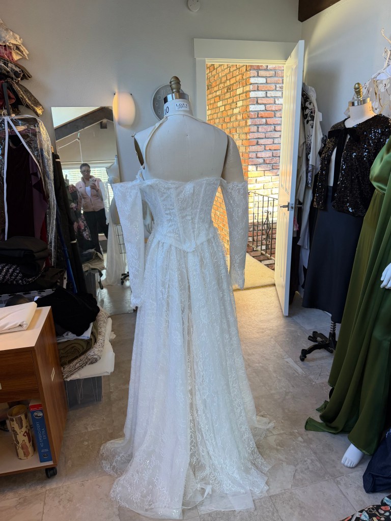 Me finishing up gown I made in 2023 for a special lady Michel. She said to me recently “I don’t think I’ve ever felt that gorgeous in a piece of clothing”. Words to live by!