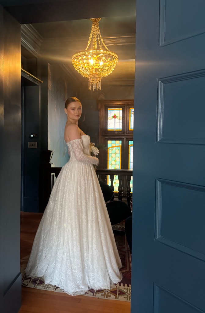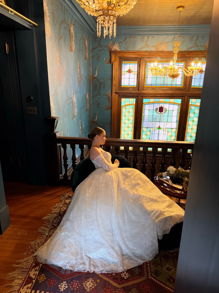 The time finally came that I was 100% finished with the dress and I was ready to deliver it to Michel. It kind of feels like I am handing off a little part of me whenever it’s time to deliver the dress, so I try to take the time to get some good photos of the finished product before she’s gone off to her rightful owner!