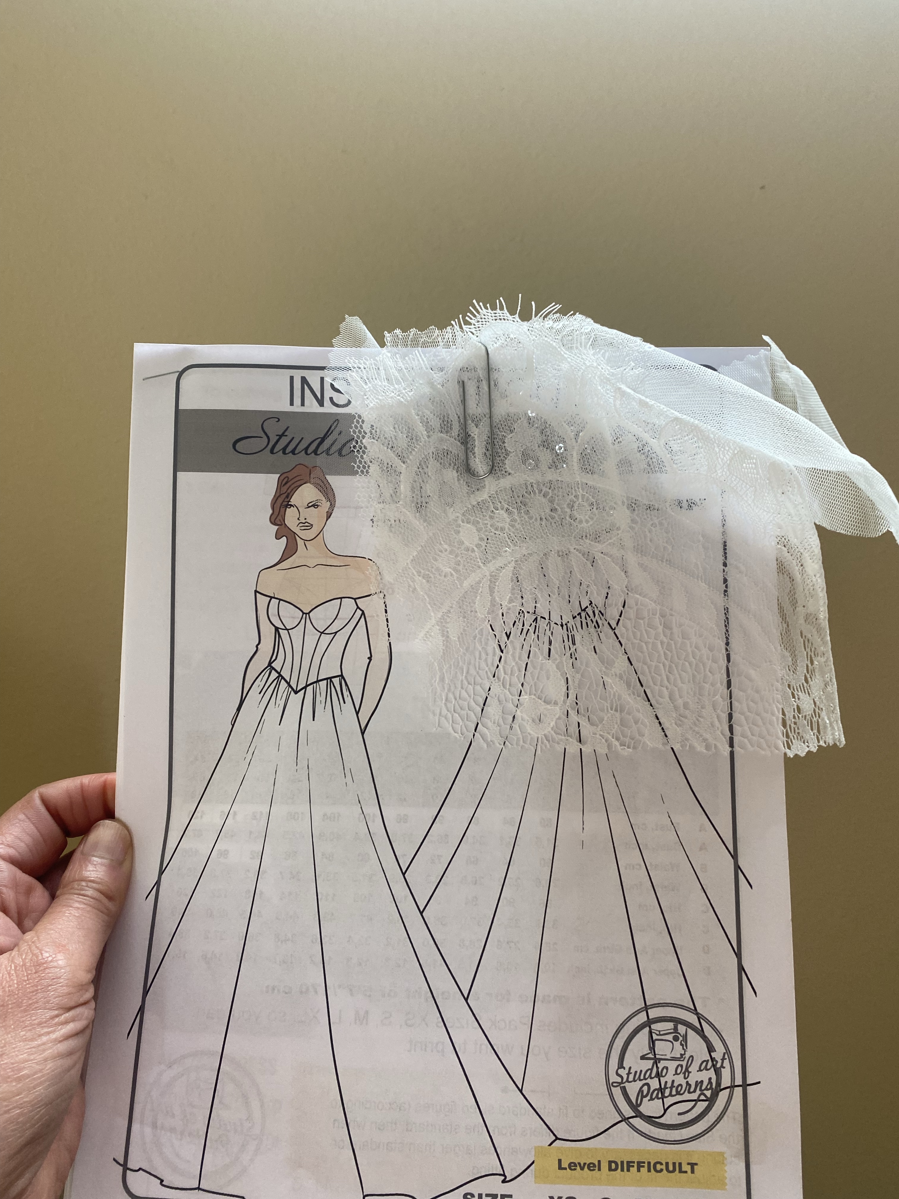 The pattern and the lace! Please excuse the cluttered background of my studio!