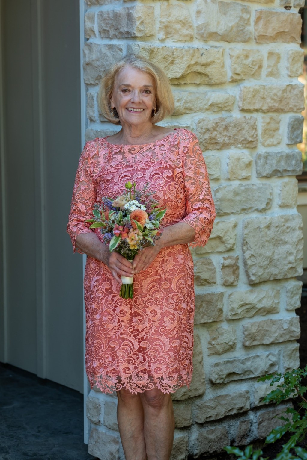 As soon as I got back from my trip to California, I arranged a meeting with Ardith to show her what I found. We agreed that although the blue was a nice color, and the other colors available were all pretty, the coral really looked great on her and that was the one for her.