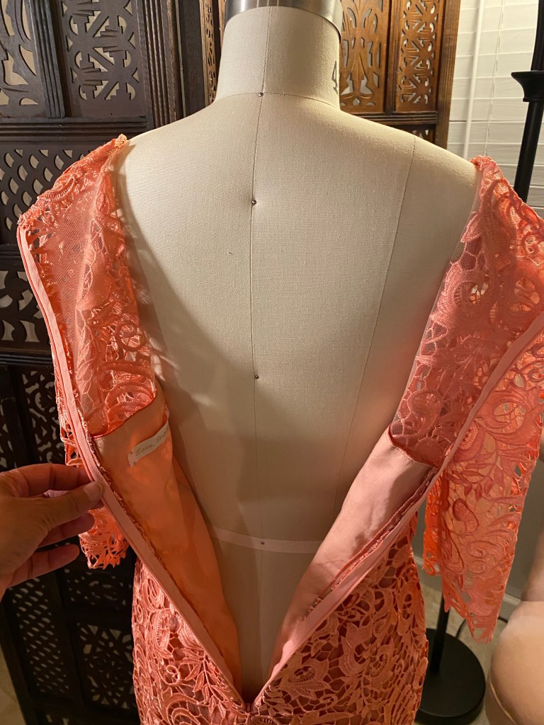We had a couple of fittings in the final fabric, one which I realized that I needed to have a longer zipper in order for her to easily be able to step into the dress.