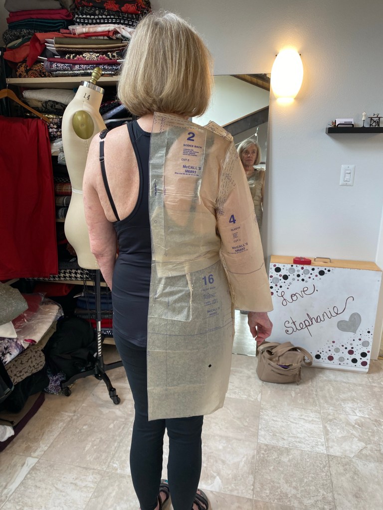 Being physically active with doing many outdoor activities like hiking and paddling (she is on a Dragon Boat racing team here in Portland, OR!), Ardith is in great shape and was very easy to find a pattern and fit it with very few adjustments.