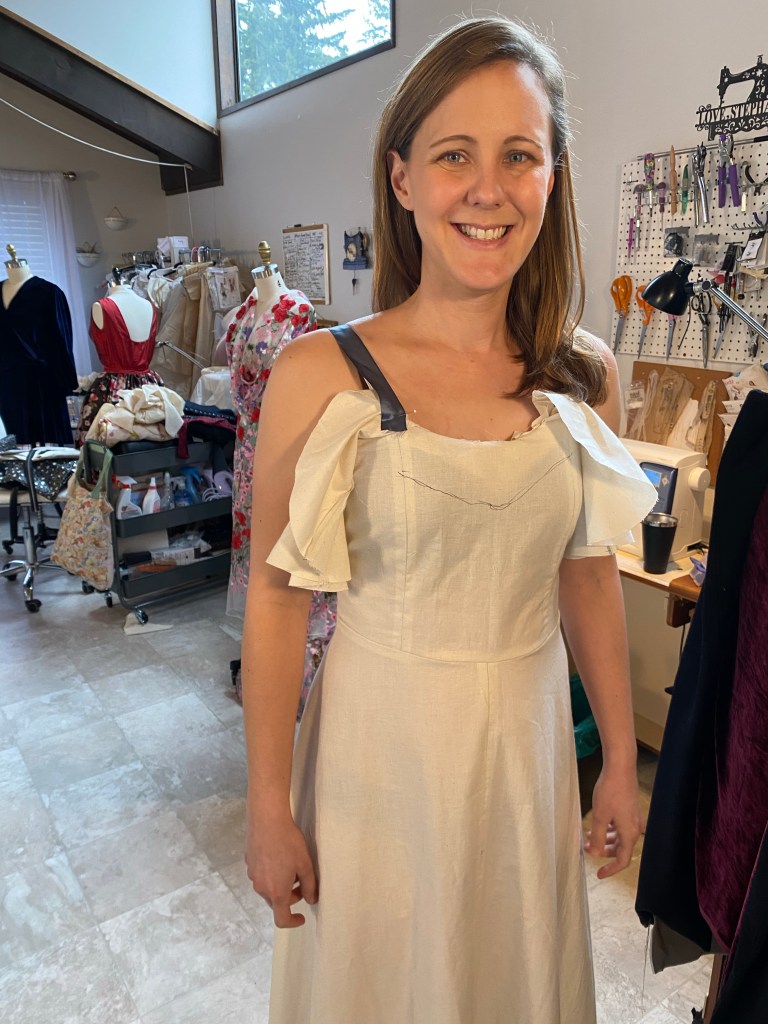 The following photos are from the dress nearly complete, yet I later made more changes to the fit once I had the model fitting (stay tuned for part 2 of this post).