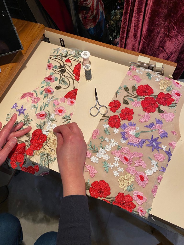 Part of the reason for the procrastination on this dress is I had to take extra care to cut out the fabric, perfectly aligning the motif design of the gorgeous sequin embellished delicate lace mesh: