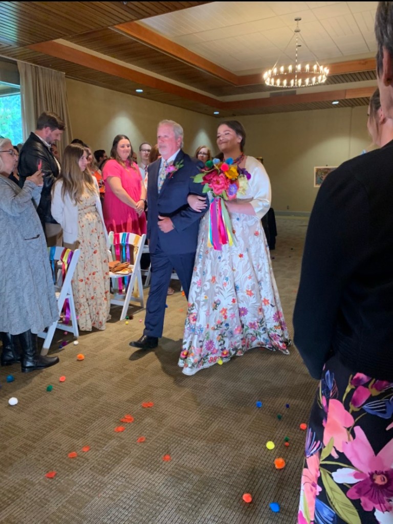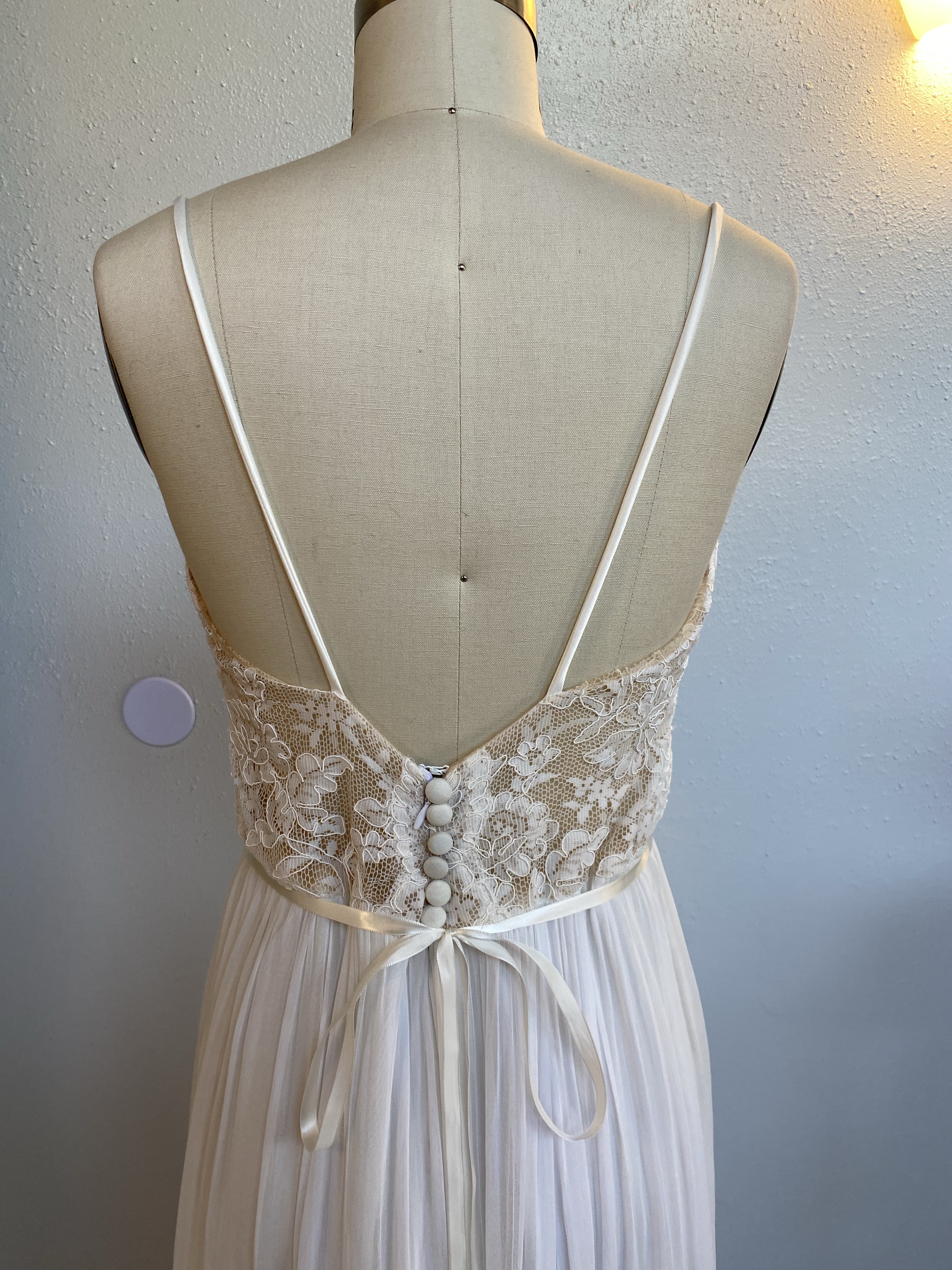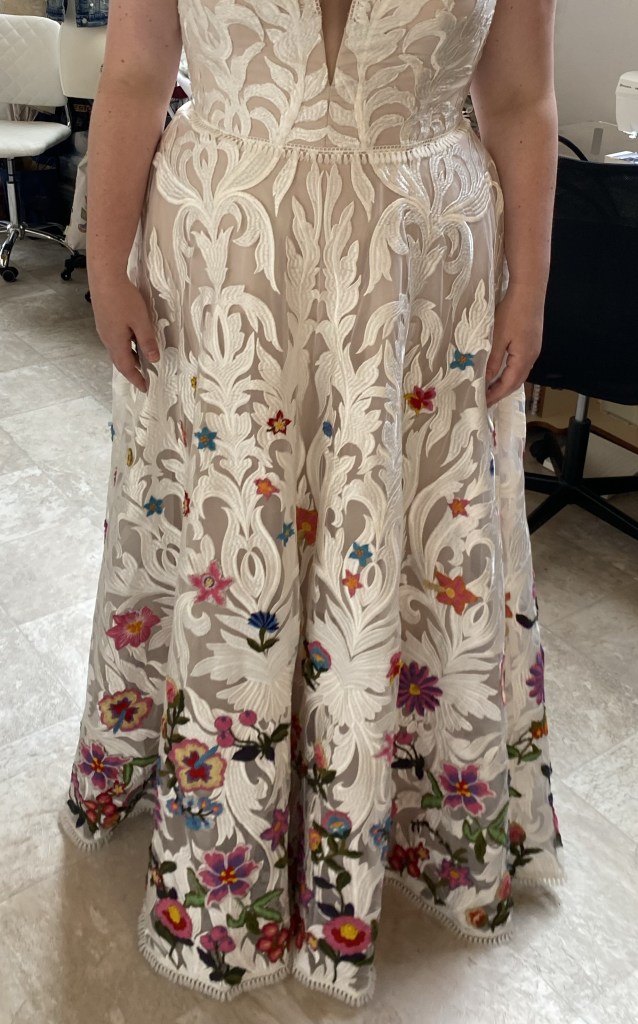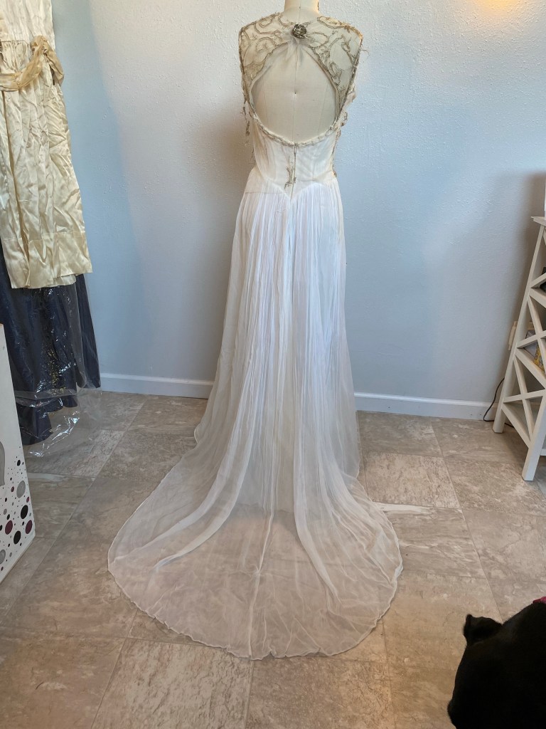 - I lengthened the hemline and added more of a slight train to the back of the dress (who doesn’t like a little train drama, right?).