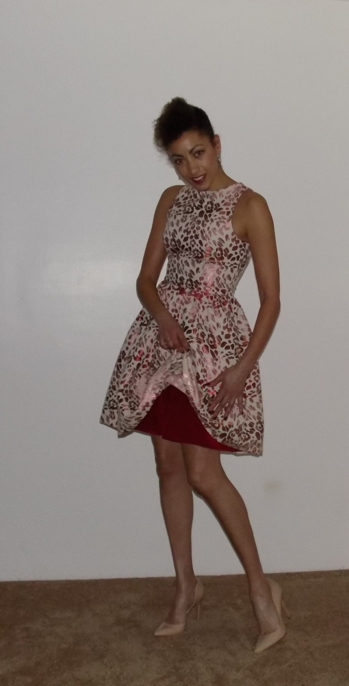 I skimmed out the sides of the skirt part of the dress to make it more body hugging (figure flattering) and not the A-line shape that hangs from the waist as the photo suggests.