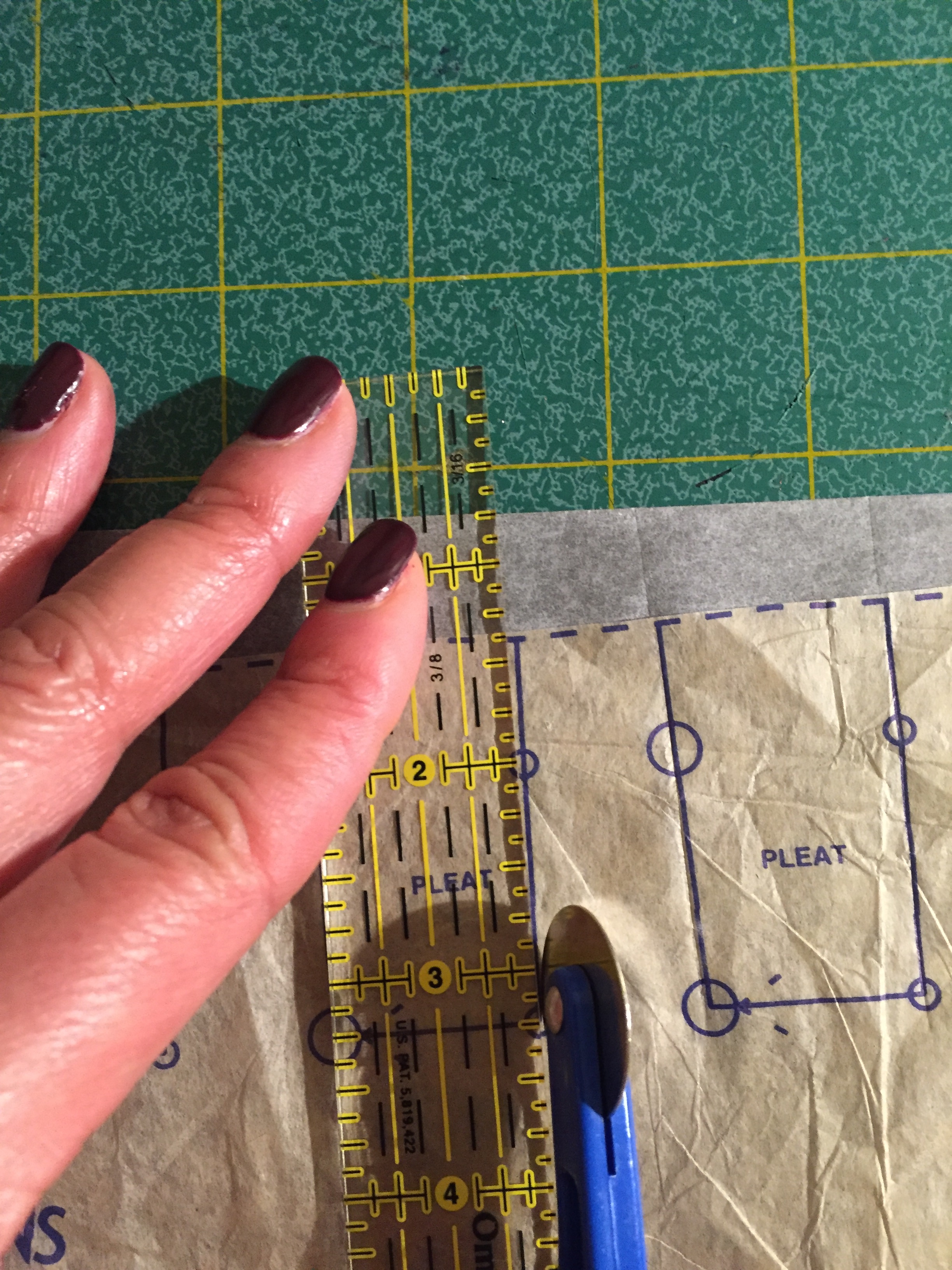 I traced the pleat placement using the handy pleating guide included in the pattern pieces: