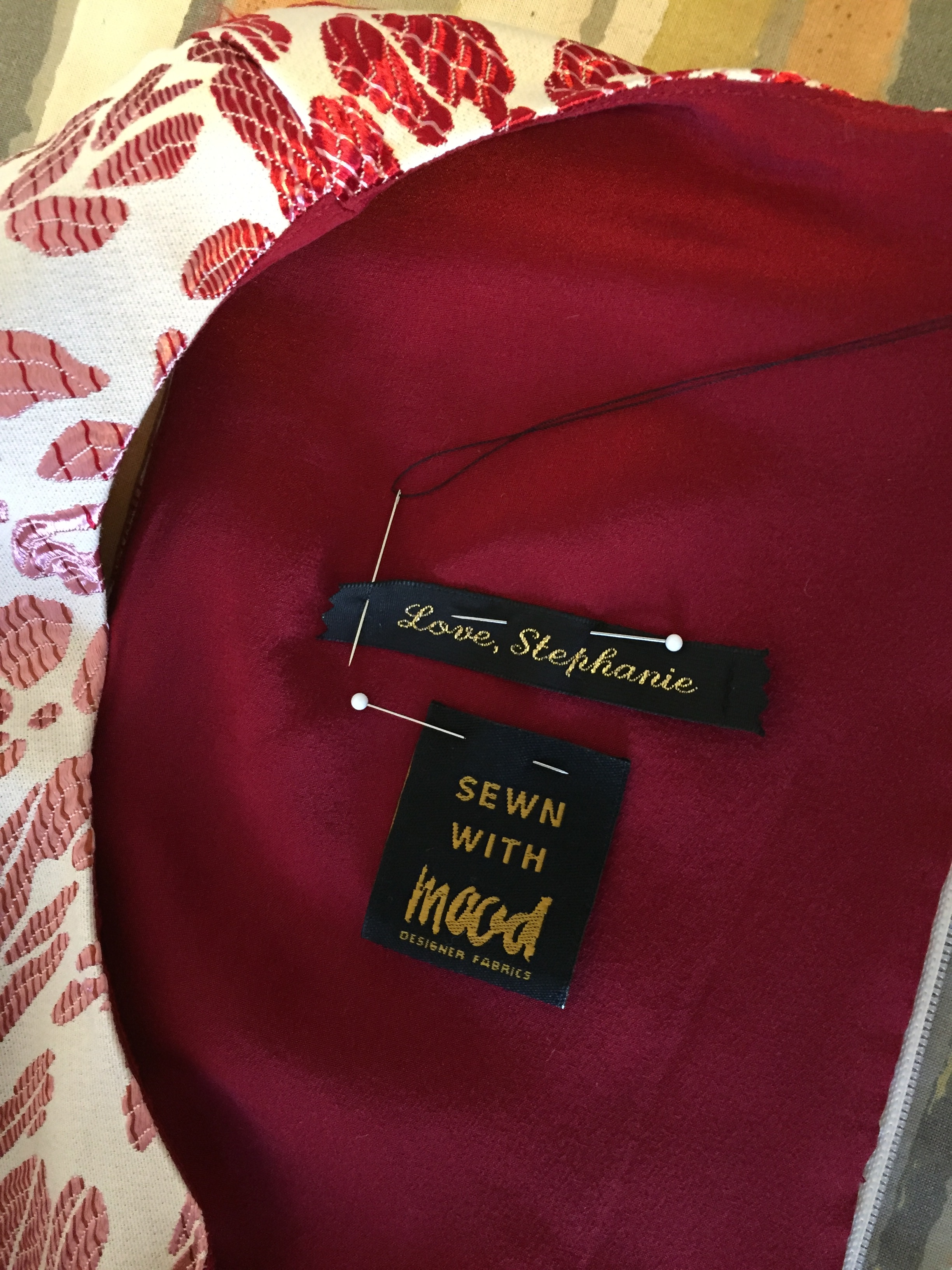 Mood Fabrics even sent a little label with the fabric that I sewed into my dress below my Love, Stephanie label. Oh, the little things make all the difference!
