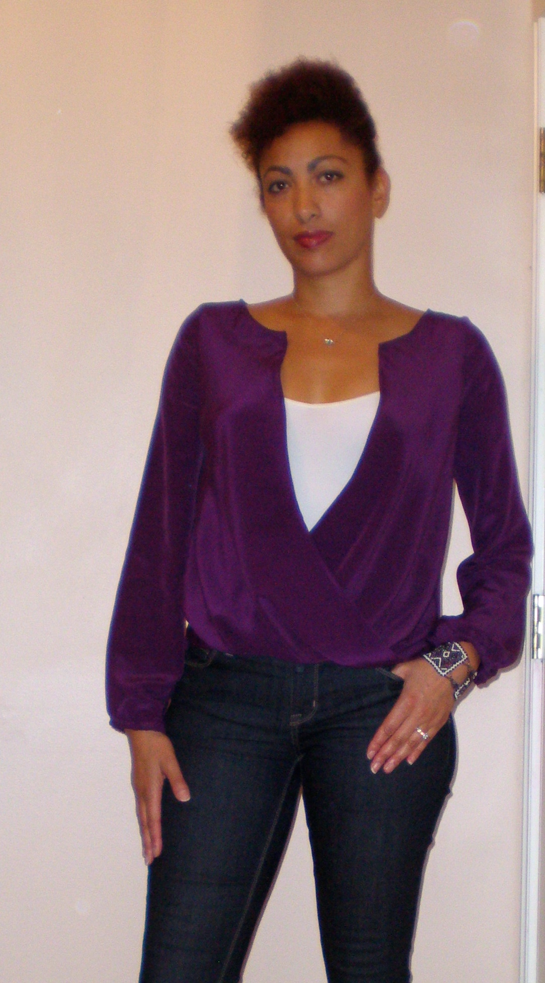 I just completed this lovely purple silk crepe crossover blouson top from New Look 6303 pattern. I just love the style of this top as I have seen on Pinterest several times and have pinned a few to my “Sew Love-Tops” board: